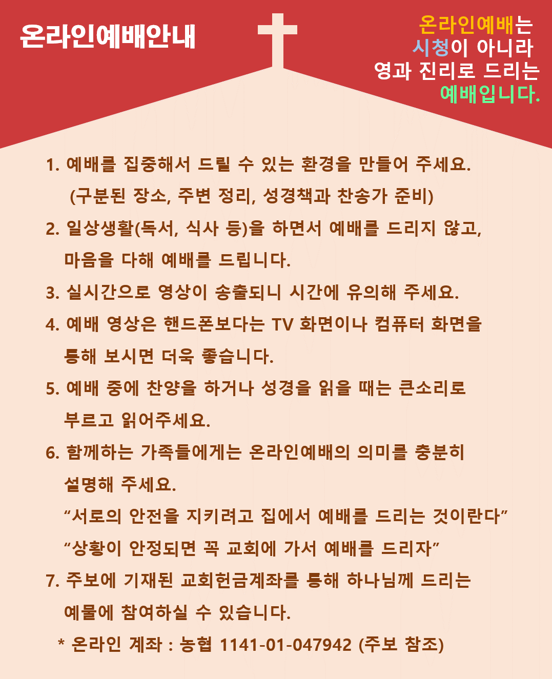 온라인예배안내 (시청이 아니라 영과 진리로 드리는 예배입니다.)